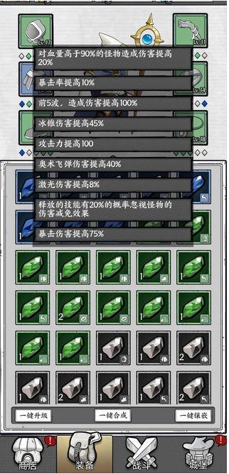 2、攻击力系统:玩家可以通过装备图纸来强化装备,达到攻击力提升的目的,还有一种方式就是通过攻击宝石来增加。