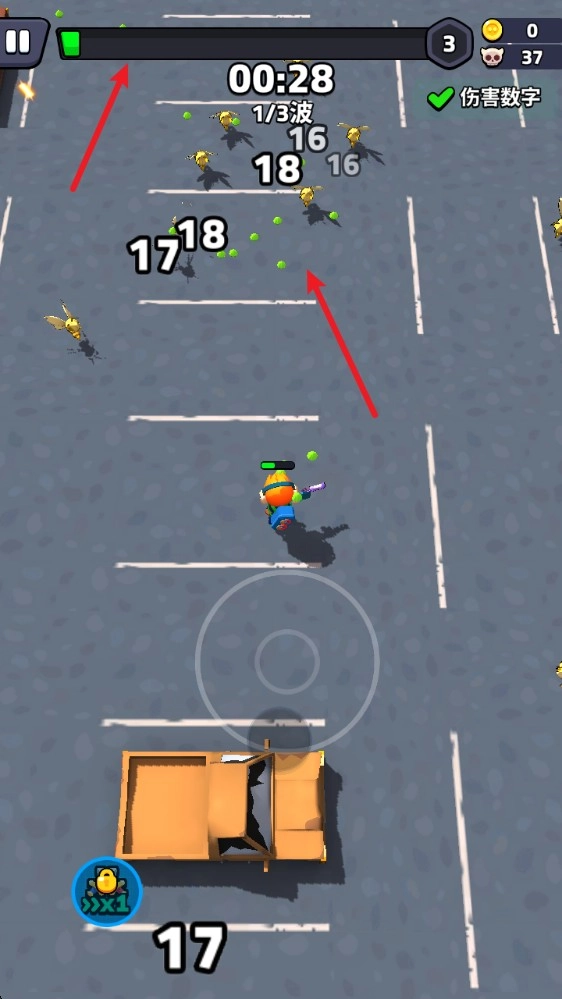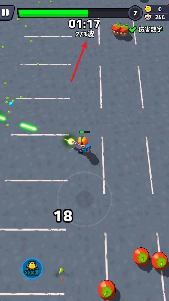 1、在游戏里拖动摇杆就能操控移动,把周围出现的敌人消灭掉。