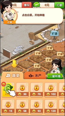 2、我们需要根据系统提示在相应的农田位置进行大白菜的种植操作。