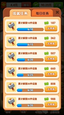 5、此外,该游戏还加入了一系列非常简单的游戏任务,完成任务,让我们赚得盆满钵满。