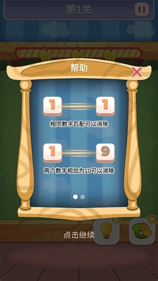 2、游戏规则简单,匹配相同的数字进行消除,两个数字加起来为10也能消除;