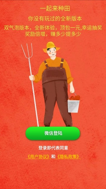 《一起去种田红包版》是一款能为玩家带来精彩种田模拟挑战的手机游戏,趣味玩法将在这个卡通世界里呈现,让你体验截然不同的人生。各种奇趣挑战都将在此开启,只需完成挑战任务,就能收获丰厚奖励,每一天都有惊喜等待着大家。