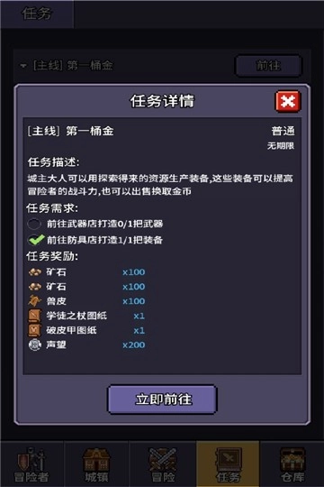 《冒险与征途》是一款采用复古像素风格的冒险类休闲策略游戏。玩家在游戏中化身经典冒险者,当等级达到特定要求时,可接取转职任务,选择自己喜爱的职业。随后,领取各类任务,备好装备与道具,开启一段充满挑战的冒险旅程。