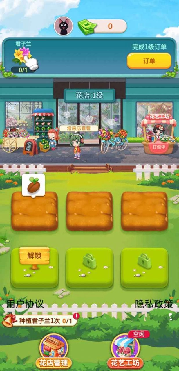 2、选择合适的花朵,吸引多多的顾客前来消费,游戏玩法比较的轻松,带来更多的惬意;
