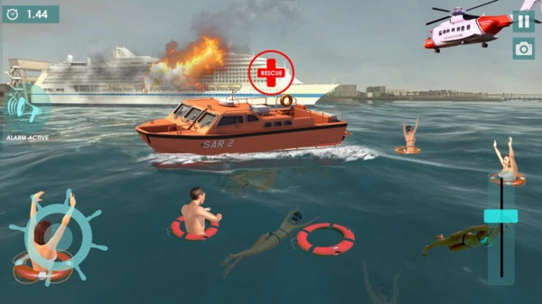 水上救援模拟器是一款模拟救援落水乘客的游戏。许多游客乘坐轮船观光时遭遇事故,被困在水面上,玩家需要在规定时间内救出所有落水者。游戏提供多种划艇供玩家使用,还有救生圈可帮助游客暂时维持生存,是一款非常有趣的模拟救援类游戏。