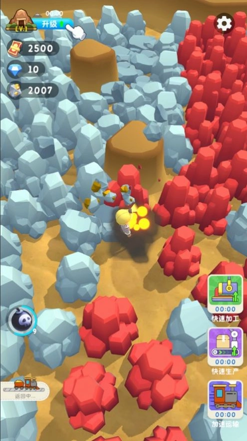 2、将这些矿石全部炸粉碎,逼真的音效模拟,渲染了一种轻松的氛围,十分解压;