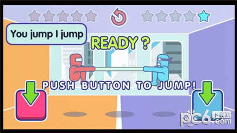 3、游戏里角色借助跳跃动作拉动绳子,拖拽对手,操作简便,很适合好友间的对战!