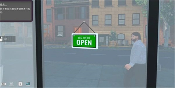4、来到店铺门口,将牌子变为OPEN准备开店迎客。