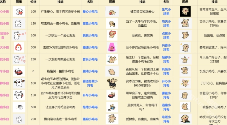 可选"小白"与多种技能“小鸡毛”角色
