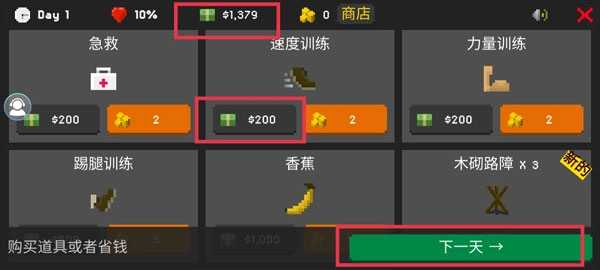 5、您可以用获得的报酬购买枪支、药品,以及身体速度训练提升等。