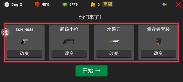 6、接着用你买的枪装备到自己身上,这样第二天就可以增强自己的火力。