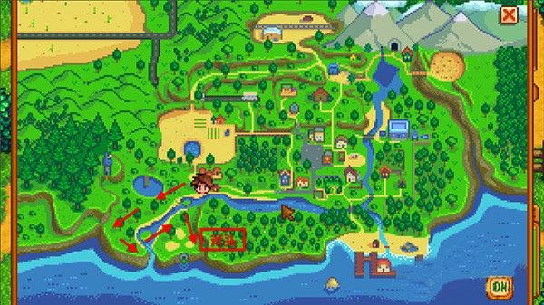 5、从自家农场出发往南走(下面的一条路),然后往右一点点有两座小木桥,走过去