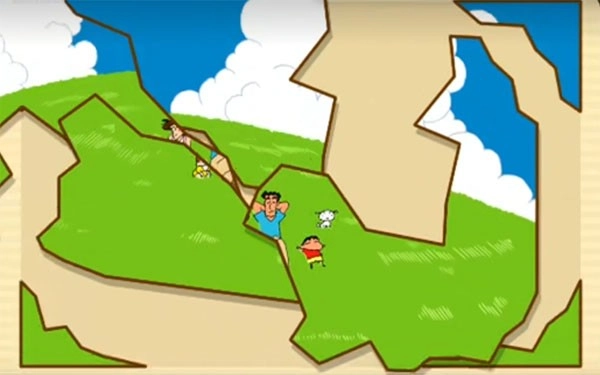 4、然后蜡笔小新就可以开始拼图了,点击拼图碎片移动到合适位置即可。