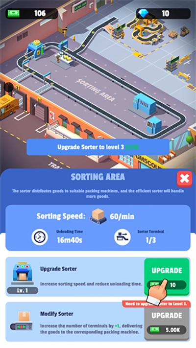 通过强化分拣技能解锁专业器械,提升包裹处理效率与精准度,为高效运营打下基础。