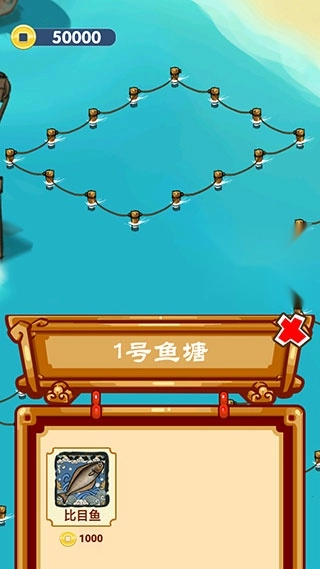 1、相同的鱼苗可通过点击合成获得新鱼苗,不同种类的鱼儿为玩家带来的收益各不相同。