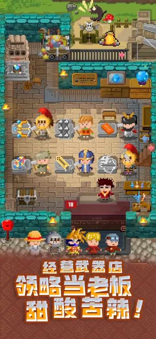 《锻冶屋英雄谭》是一款像素风格的休闲放置冒险游戏,见证了老一代铁匠的谢幕与新一代铁匠的崛起。作为接手铁匠铺的继承者,你能否引领王国终结长达千年的黑暗时代?在中文版游戏里,玩家需要招募各路英雄,并为他们打造各类强力武器,助力英雄们征讨魔物。