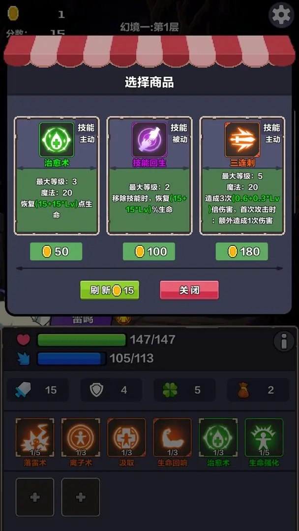 3.巧妙利用“刷新”技能,实现资源的高效获取。同时,注意控制怪物击杀数量,避免楼层关卡进度过快导致怪物过于强大。