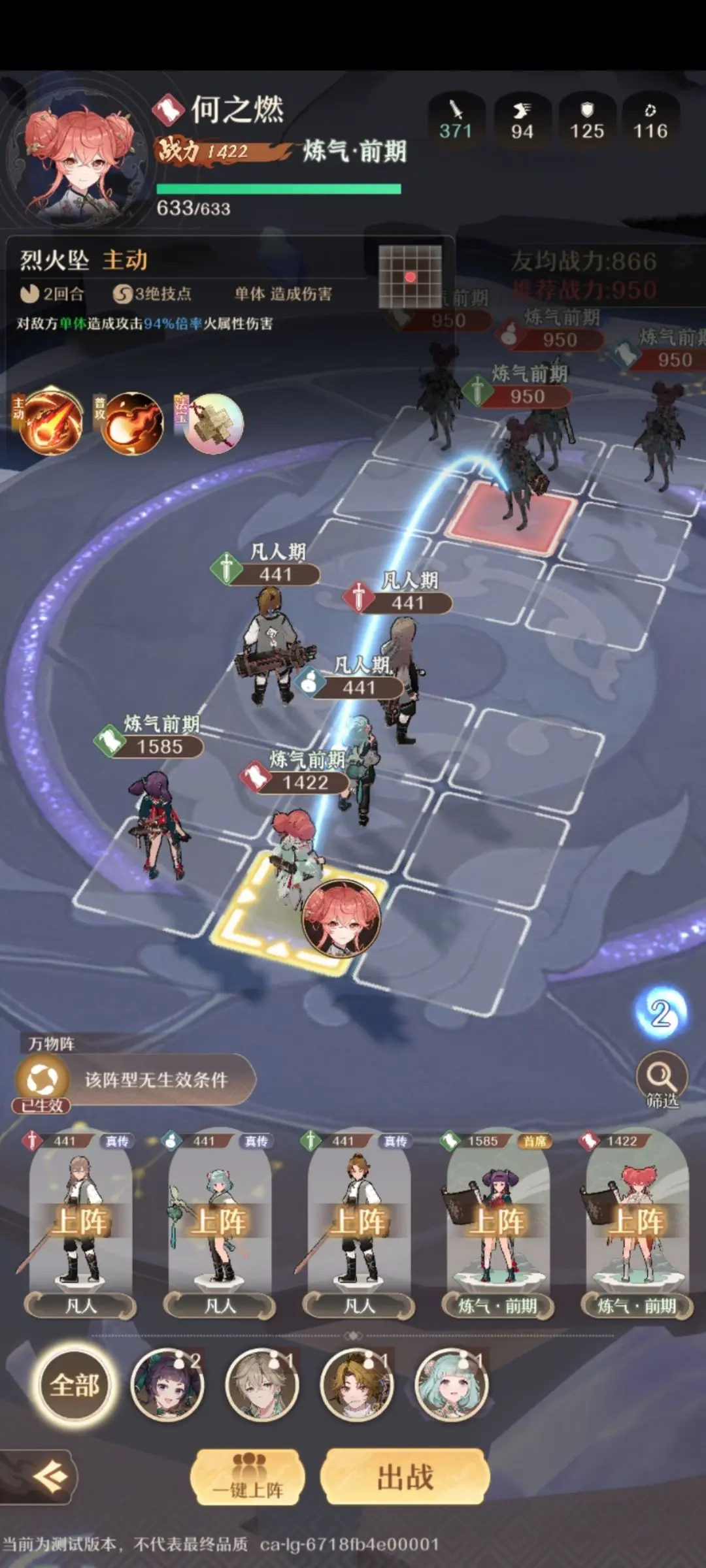 ③上阵5名弟子,一号位:御剑做防御位,后排前期建议解锁水丹鼎修炼一个奶妈;然后上何之燃进行输出,其他可以根据大家的养成情况就行。