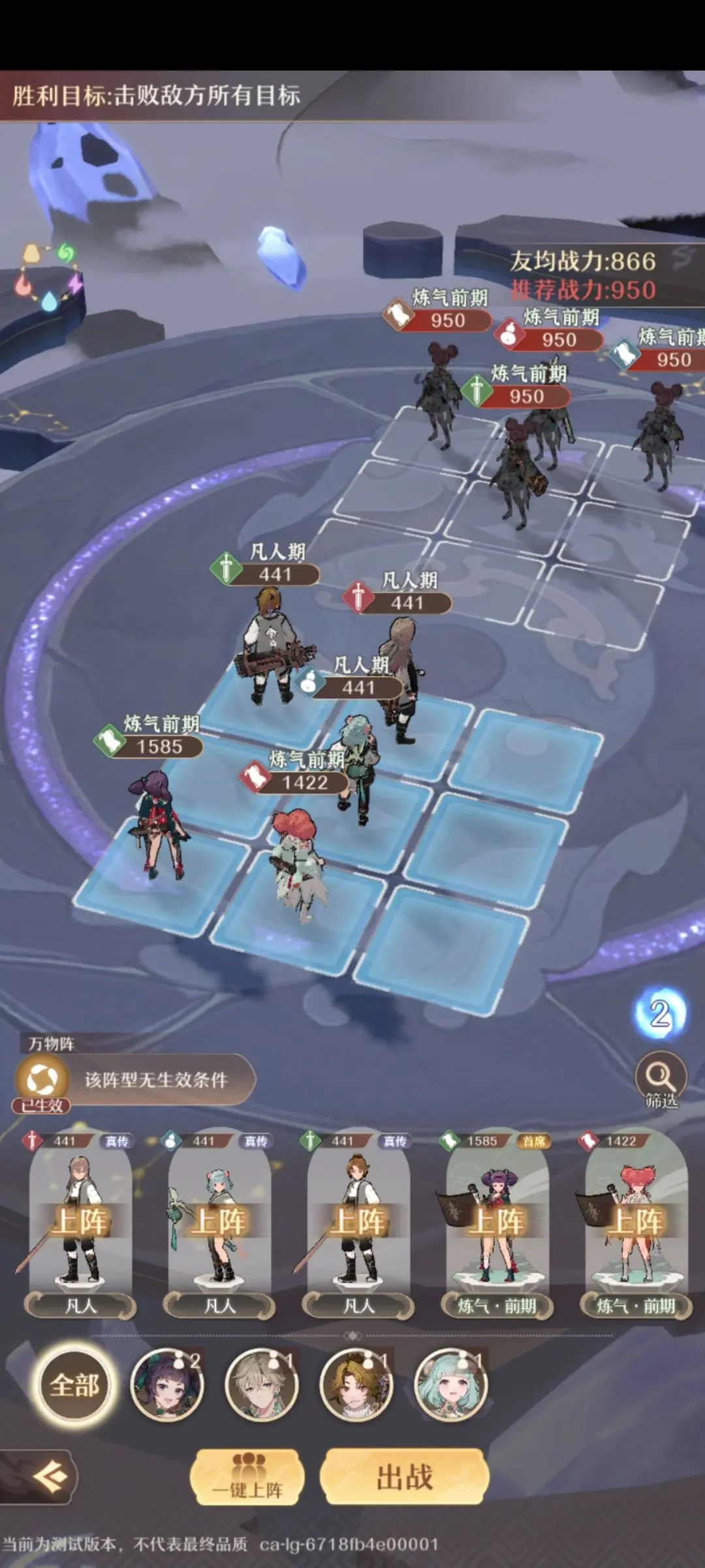 ①首先是布阵环节,可从已完成修炼的弟子中挑选上阵人选,每位弟子只能选择一个已修炼完毕的进行上阵。这里建议至少安排两个修炼到位的前排弟子,否则后续的修炼进程会相对困难。
