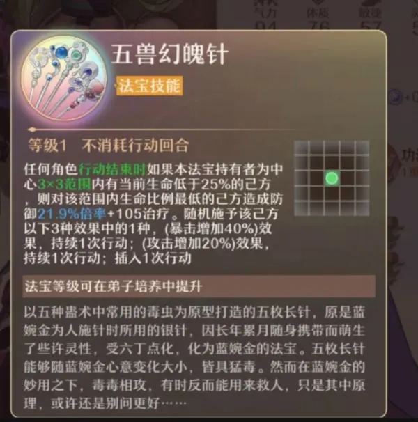 ④法宝方面:在战斗中会自动触发,是输出角色打出伤害的工具。注意:每场战斗每名弟子只能使用一次法宝,绝技可以手动释放增加过关率