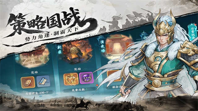游戏还加入了过关斩将、山海异兽,远征西域等富有三国味道的PVP、PVE玩法,让您充分感受到国风策略游戏的独特魅力!