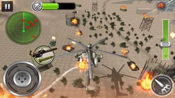 游戏里满是真实直升机的武装攻击以及武装直升机间的空中战斗,通过倾斜屏幕操控直升机,摧毁目标区域并完成当前关卡,就能解锁下一个任务。