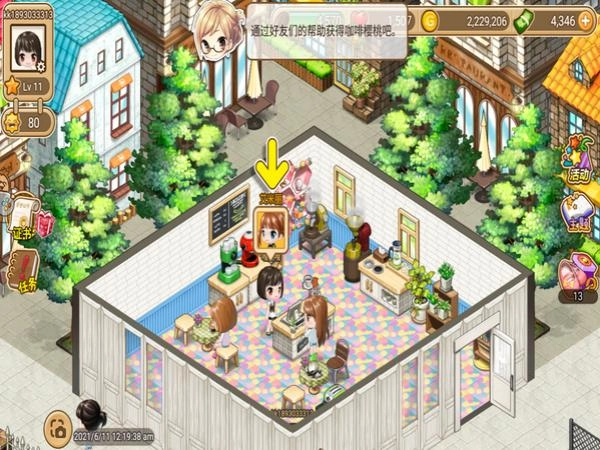 3、个性化咖啡馆打造:提供多种咖啡和装饰品供选择,根据喜好打造独特咖啡馆。