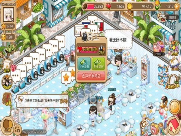 店员每天的爱心时间固定4小时,超过4小时后员工会变得怠倦,同时咖啡和配菜的产出效率会大幅度降低,需要及时拖拽店员保证工作积极性,每次拖拽会增加30分钟的工作时间。