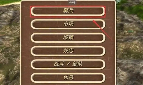 1、在手机上启动游戏后,点击菜单栏,接着从菜单里选择“募兵”这一选项。