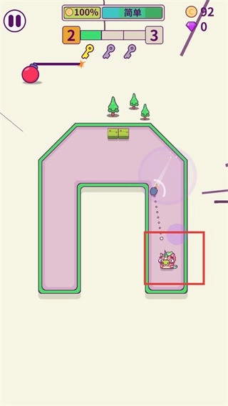 你在游戏中设计的最快的炸弹路线是你通过关卡的有利因素。如果你设计的炸弹引信不合理,就会直接在安全区域爆炸,你的目标就达不到。