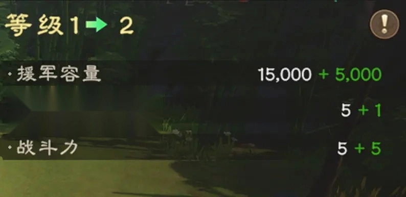 4、兵营增强单兵统率值,校场扩大整体部队规模。