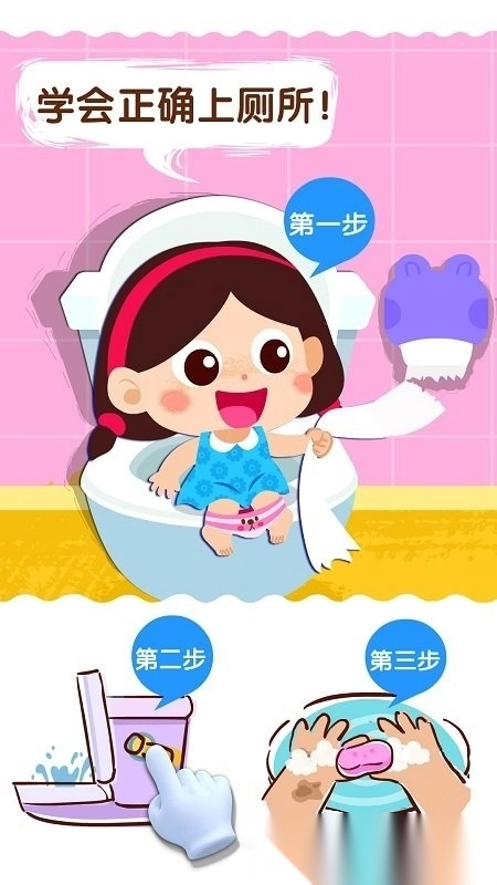 还在为孩子的如厕训练感到烦恼吗?宝宝巴士为您提供了贴心的解决办法。它把上厕所的步骤巧妙融入到简单的游戏里,引导孩子掌握正确的如厕方法,同时关注相关的卫生细节;操作界面清晰直观,角色设计充满童趣,还配备了语音提示功能,让学习过程变得更加亲切自然。