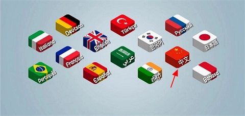 1、打开游戏之后,点击中国旗帜图案“中文”。