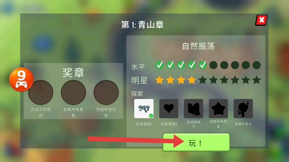 1、在关卡选择界面点击【玩!】按钮,即可进入“第1:青山章”中的“自然振荡”关卡。