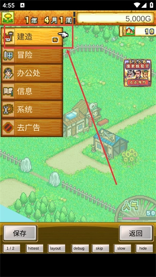 2、进入游戏主界面后,点击左侧的【建造】选项,打开建造菜单,开始规划城镇的基础建设。