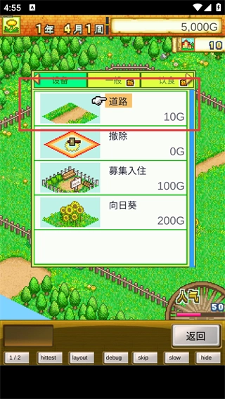 3、在建造菜单中选择【道路】选项,消耗10G资源建造道路,为后续建筑布局和居民移动提供便利。