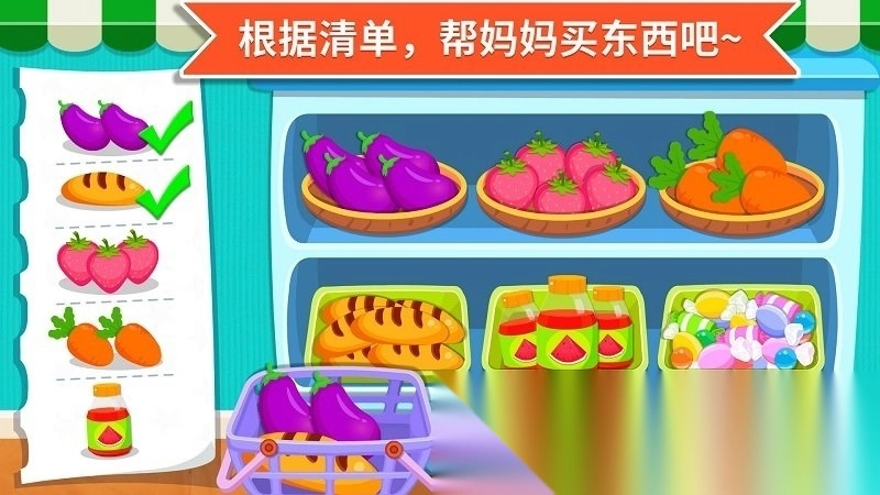 2. 按清单采购:协助妈妈购买清单所列物品,引导孩子有目标地逛超市,从小建立合理的消费观念。