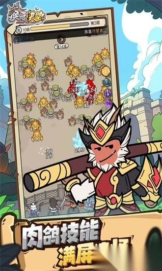《猴哥快跑》是一款策略挑战类游戏,融入了丰富的西游元素。玩家需通过放置不同英雄来抵御妖怪的轮番进攻,游戏关卡数量众多,玩家需要灵活调整阵容,并可对角色技能进行强化升级。