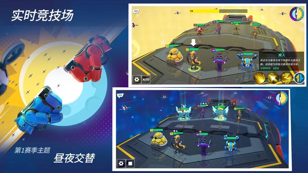 《元素裂变》是一款融合传统卡牌玩法的回合制策略RPG游戏。在游戏里,玩家需要组建专属的元素队伍,在城市中展开巡查,维护秩序与安宁。玩法上采用3D速度机制卡牌系统,玩家可操控最多四人的队伍,与敌方四人小队展开对决。无论是卡牌攻击还是技能释放,都配备了丰富的动作模组,让玩家能直观欣赏角色的战斗姿态。值得注意的是,速度是游戏中的关键要素——速度更快的角色不仅能优先行动,还能获得更多回合机会,从而在战斗中占据显著优势。