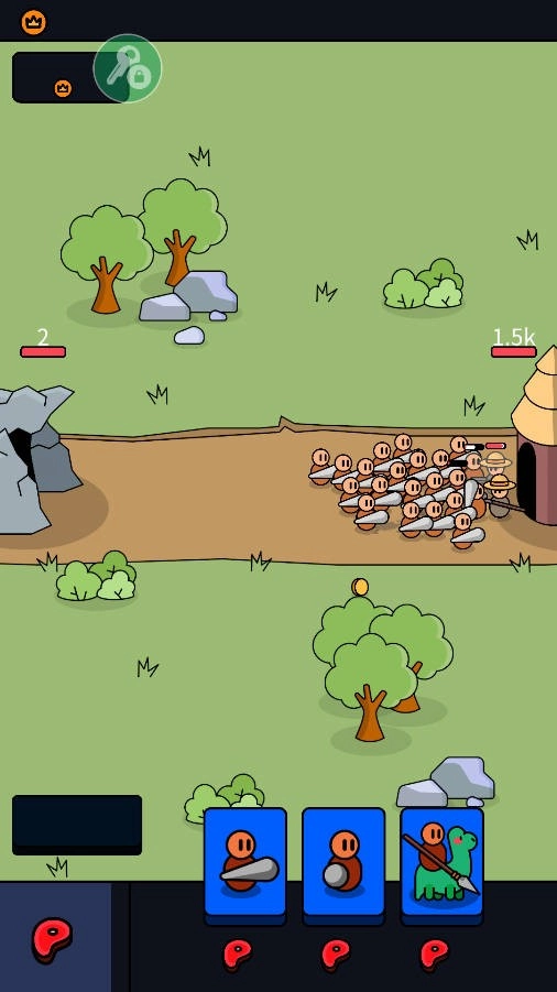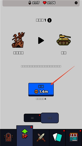 1、首先你得点击下方的士兵,以此召唤战士投入战斗。