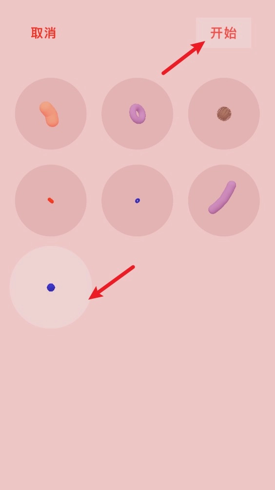 4.当下方的“开始”键被触发,神奇画卷随即展开,在圆圈视野内,细胞们宛如灵动舞者,开启生命律动。
