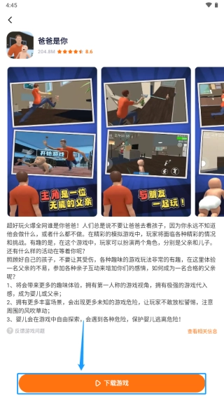 2、点击上方搜索栏,输入想要玩的游戏,如“爸爸是你”并点击打开
