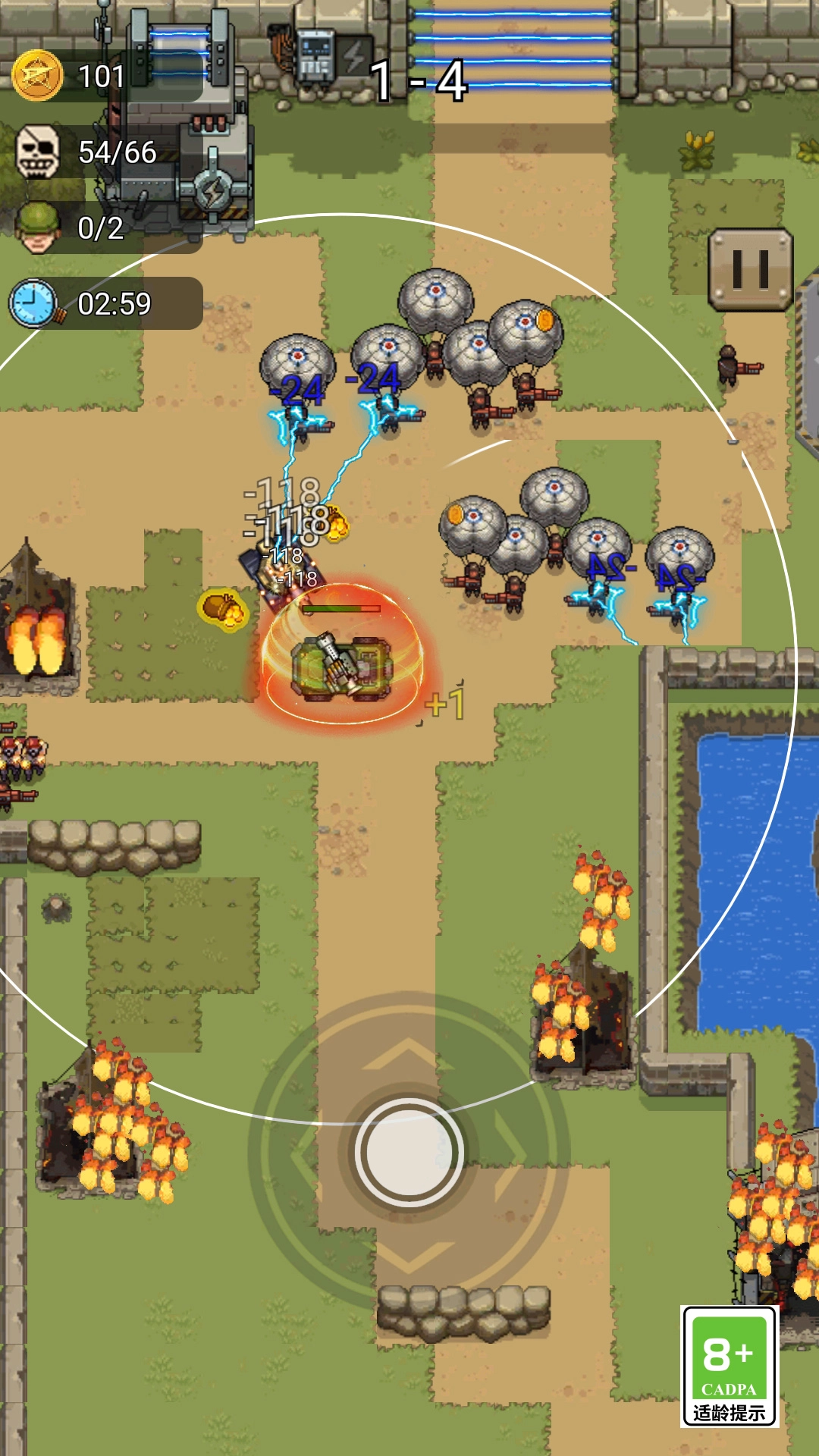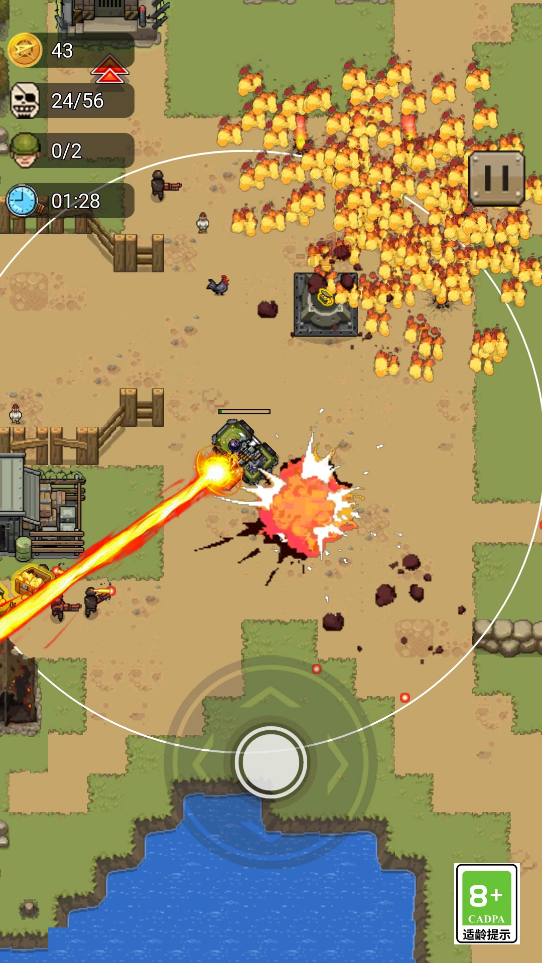 1、这是一款极具刺激性的战争冒险游戏,游戏内设有海量关卡,每个关卡都配备不同的任务等待玩家去完成。与此同时,我们还能利用获取到的金币来升级自身的武器装备,增强战斗力,从而消灭敌人、成功突围并救出被困人员!