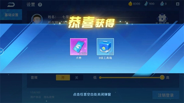4、点击兑换就可以获得点券以及工具箱等奖励了,点券可以用来兑换角色,工具箱可以用来升级车辆