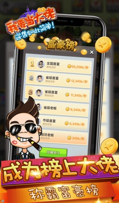 我要当大佬游戏是一款模拟经营类游戏,能为玩家提供房屋合成与店铺管理的玩法。你需要在全新的城市里逐步成长为豪宅大佬,体验每秒进账数百万的人生!一切精彩都在我要当大佬游戏中!