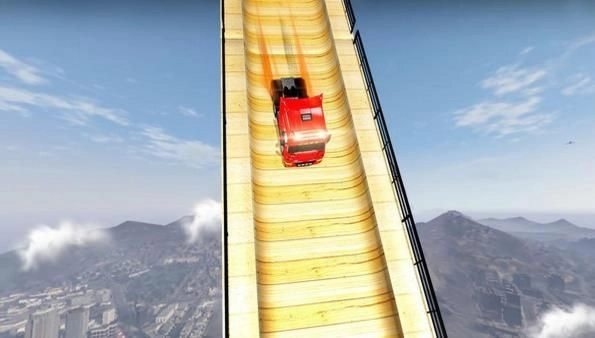斜坡赛车是一款赛车竞速游戏,游戏里的赛道是腾空架设、倾斜度极高的直线赛道,玩家驾驶的赛车是重型集装箱卡车。通常无法参与竞速比赛的重型卡车,在这种超高倾斜度的赛道上会有怎样的表现呢?赛道上还会出现不少行人,玩家需要一边操控卡车高速行驶,一边灵活躲避行人,对操作技巧的要求很高。