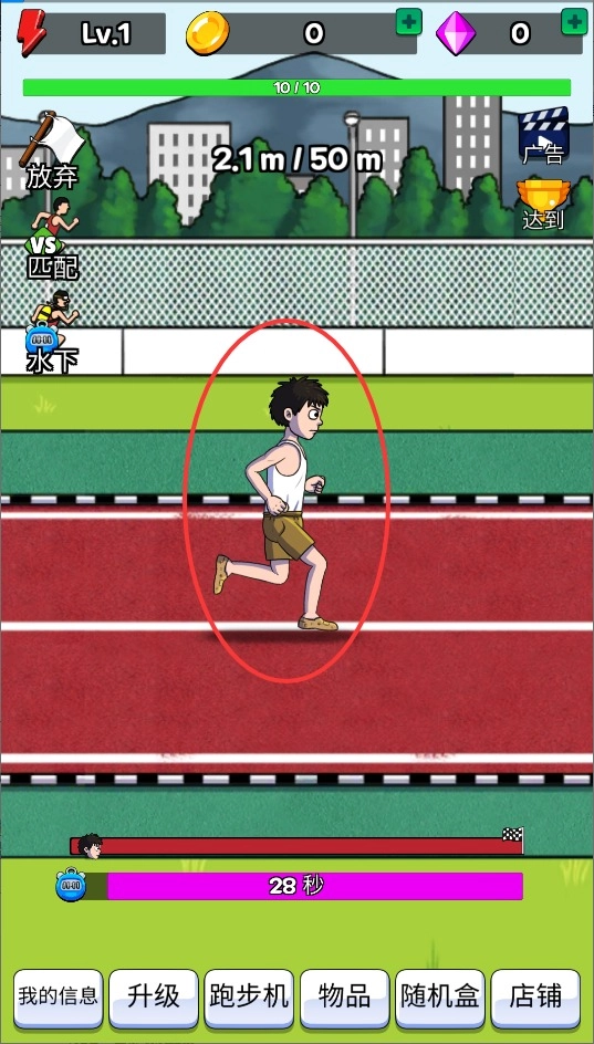 2、通过连续点击屏幕控制角色奔跑,注意把握点击节奏,点击频率越快角色移动速度也会相应提升。