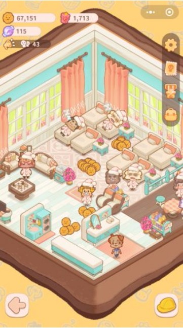 玩家能自由的DIY自己的房间和装扮,还要招揽不同的动物客人,在中提供自己合理的技巧赚取大量的小饼干。
