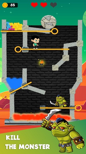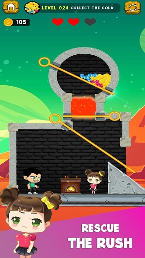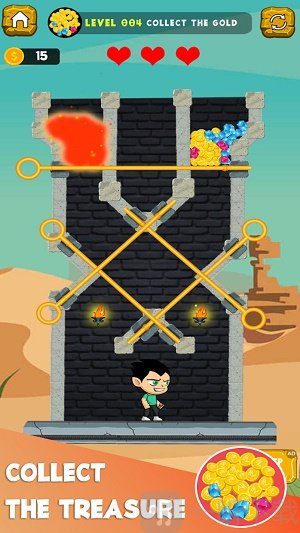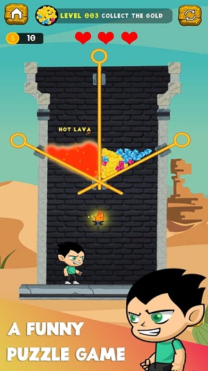 每一关的挑战都各不相同,玩家还能选择不同的解题模式,在游戏过程中释放压力、收获无穷乐趣。操作方式很简单,只需拉动场景里的别针,就能触发不同效果——最终是遇到岩浆还是获得金子,全凭玩家的操作水平决定。