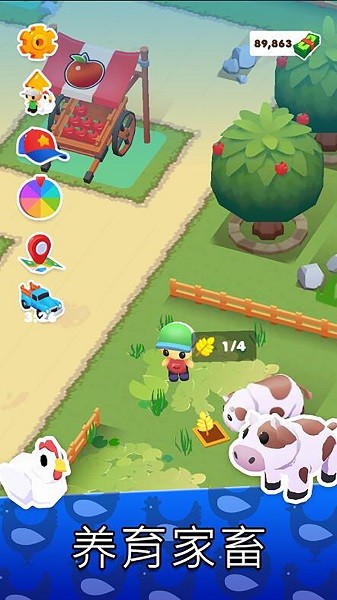 - 可以逐步解锁扩张农场,开启更多养殖玩法,随着进行,不断提升农场规模。